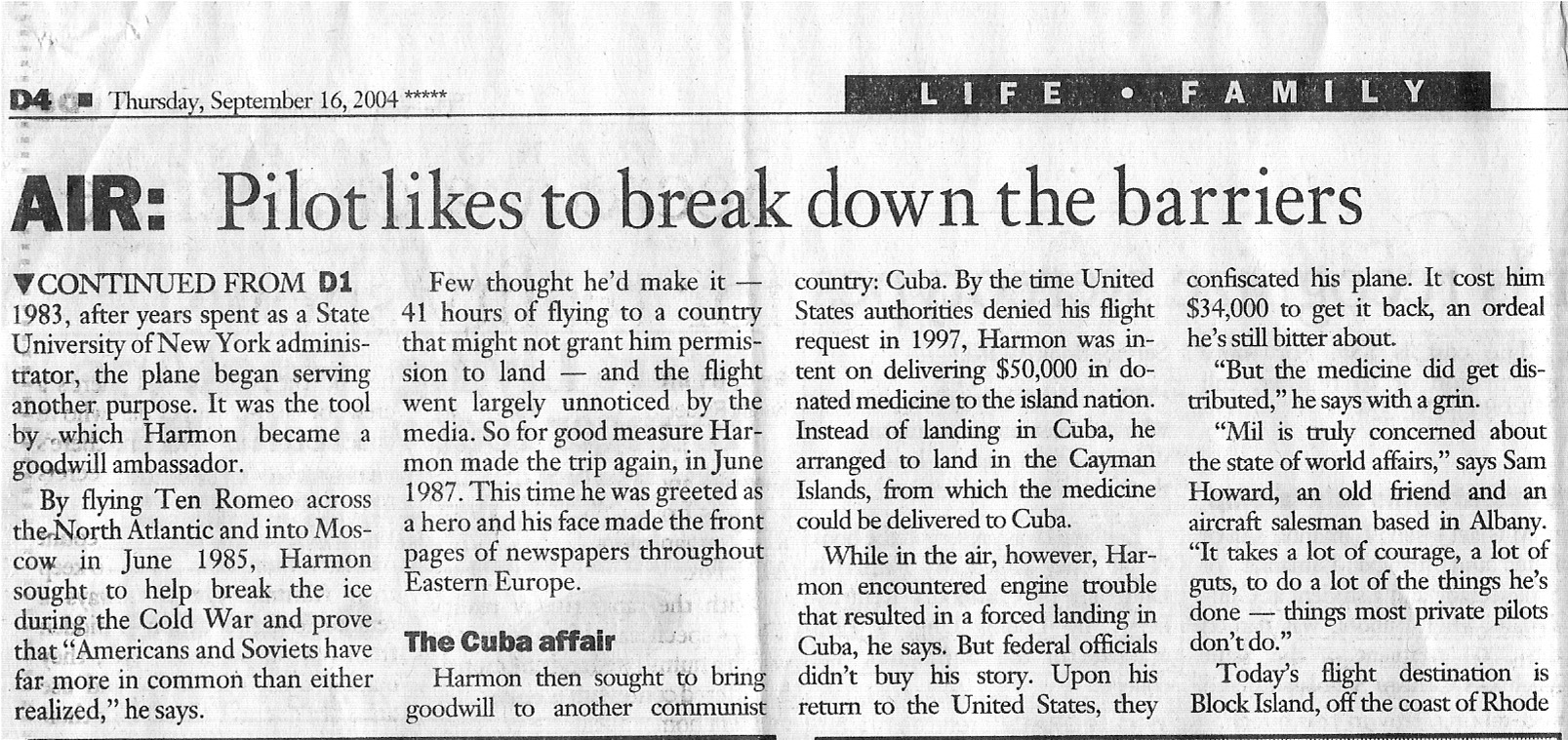 [Home Page] [Newsletters] [About Mil Harmon] [Future Plans] [Sponsors] [Advisors] [News Coverage] [Acronyms]